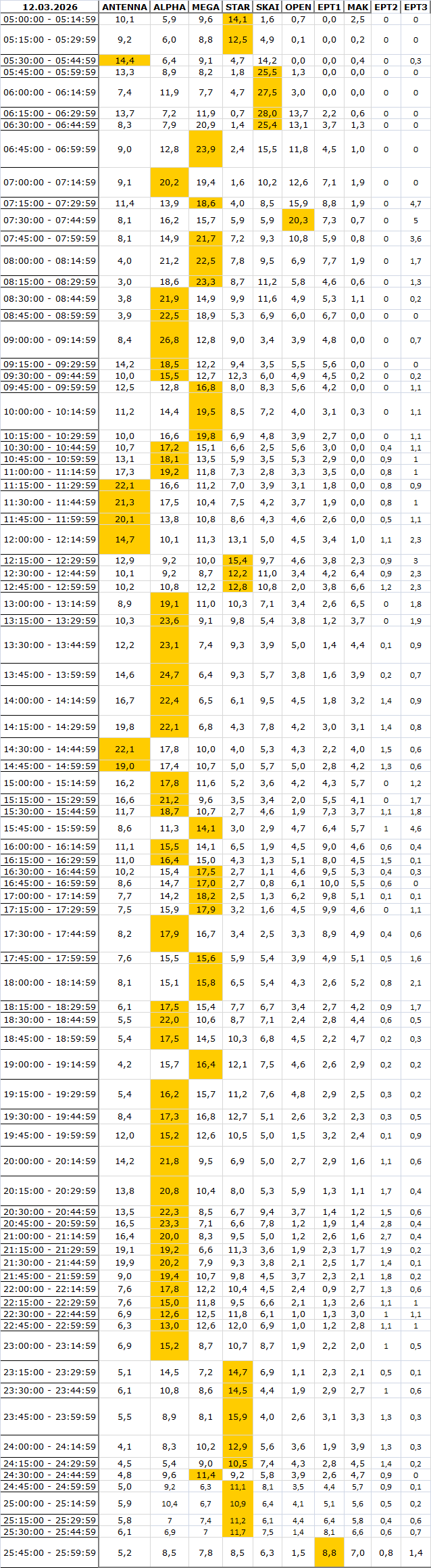 Δείτε αναλυτικά μέσα απο το TVNEA.COM τα 15' στο δυναμικό κοινό αλλα και το σύνολο ημέρα και prime time.