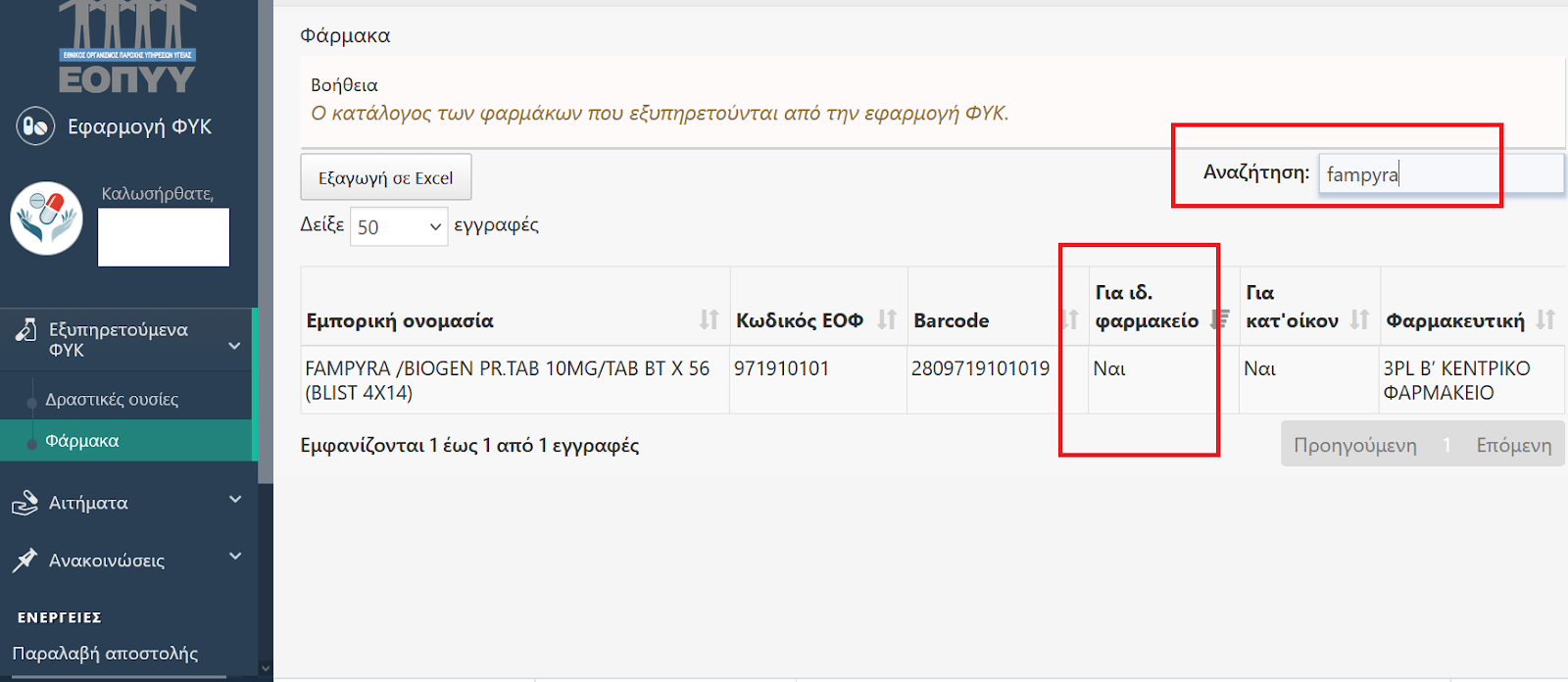 με την αναζήτηση του σκευάσματος εμφανίζεται πλέον ξεκάθαρα η ένδειξη «Για ιδ. φαρμακείο: Ναι», ώστε να γνωρίζουμε άμεσα αν το φάρμακο μπορεί να διατεθεί μέσω ιδιωτικού φαρμακείου.