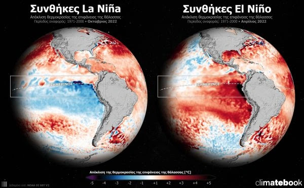 Αυτή τη στιγμή ο τροπικός Ειρηνικός βρίσκεται στη φάση Λα Νίνια όπου οι θερμοκρασίες της επιφάνειας της θάλασσας είναι τουλάχιστον 0,5 βαθμούς Κελσίου κάτω από τον μέσο όρο.