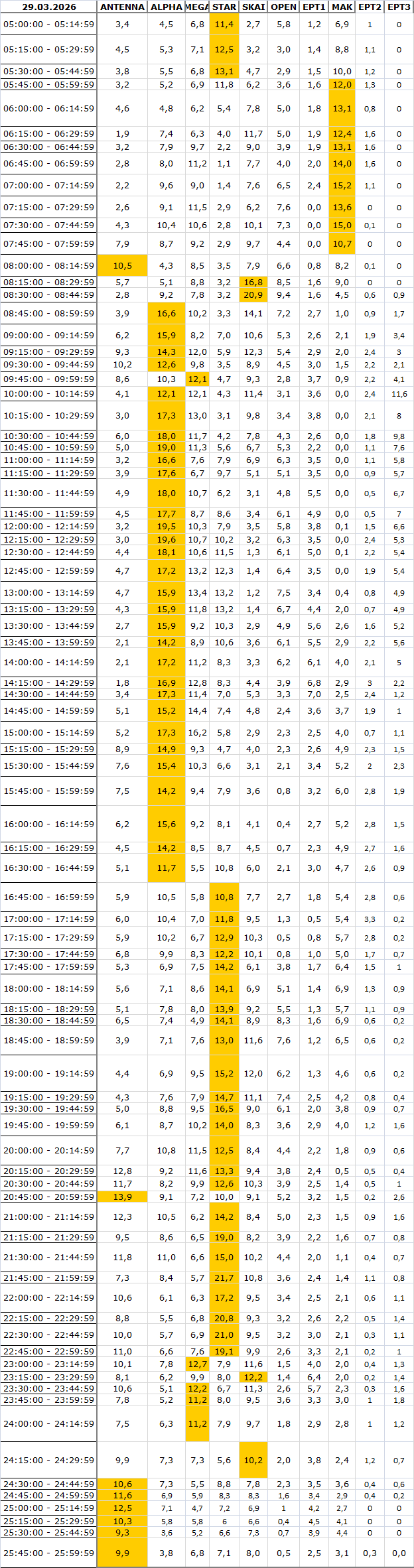 Δείτε αναλυτικά μέσα απο το TVNEA.COM τα 15' στο δυναμικό κοινό αλλα και το σύνολο ημέρα και prime time.