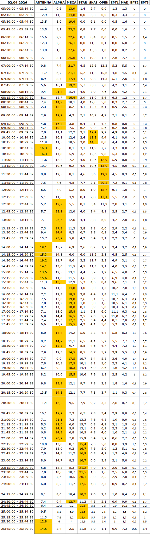 Δείτε αναλυτικά μέσα απο το TVNEA.COM τα 15' στο δυναμικό κοινό αλλα και το σύνολο ημέρα και prime time.
