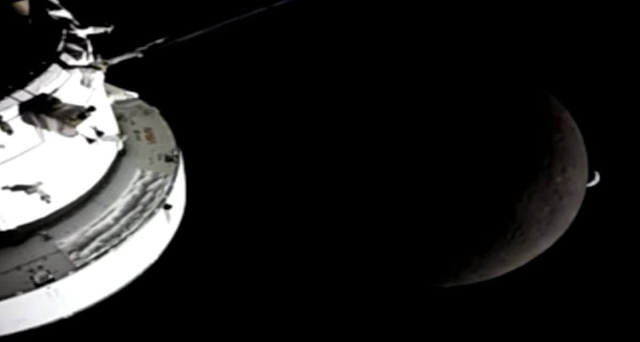 Λίγο πριν καταγραφεί η παρακατω μαγευτική εικόνα από τις κάμερες των ηλιακών πάνελ του Ευρωπαϊκού Service Module (ESM), το Orion και το πλήρωμά του έφτασαν στο πιο απομακρυσμένο σημείο της αποστολής τους: 406.772 χιλιόμετρα από τη Γη.