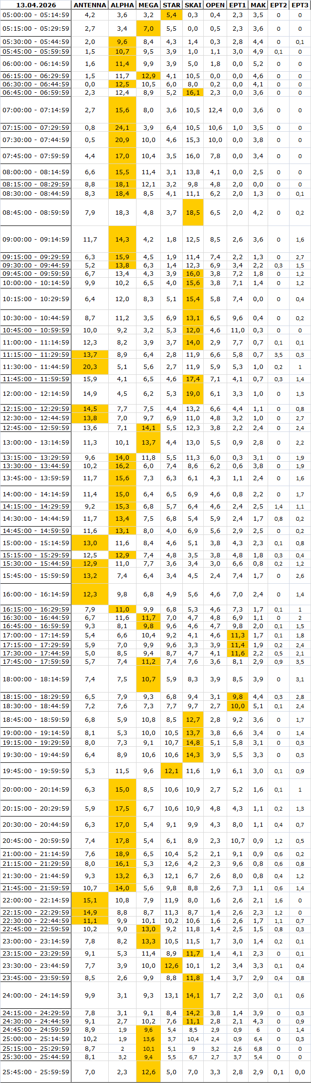 Δείτε αναλυτικά μέσα απο το TVNEA.COM τα 15' στο δυναμικό κοινό αλλα και το σύνολο ημέρα και prime time.