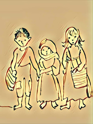 Στην εικόνα ένας πρόγονος του Φώτη πηγαίνει στο σχολείο με δυο βοσκοπούλες