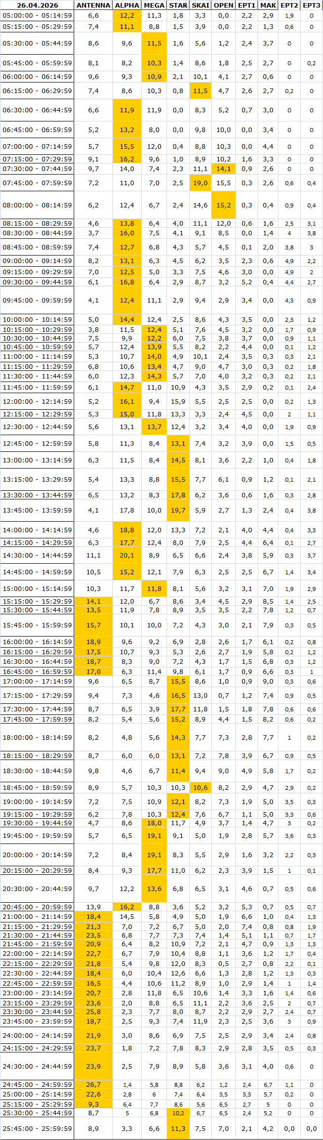 Δείτε αναλυτικά μέσα απο το TVNEA.COM τα 15' στο δυναμικό κοινό.