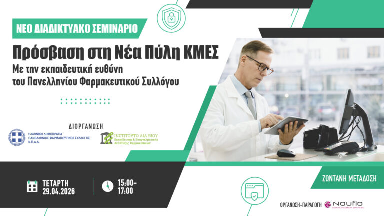 ΠΡΟΣΚΛΗΣΗΟ Πανελλήνιος Φαρμακευτικός Σύλλογος (ΠΦΣ) και το Ινστιτούτο Δια Βίου Εκπαίδευσης & Επαγγελματικής Ανάπτυξης Φαρμακοποιών (ΙΔΕΕΑΦ) έχουν τη χαρά να σας προσκαλέσουν σε Διαδικτυακό Σεμινάριο με θέμα: