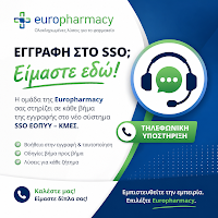 Στο πλαίσιο της μετάβασης στο νέο σύστημα ΕΟΠΥΥ-ΚΜΕΣ και της εγγραφής στο SSO, η Europharmacy προσφέρει τηλεφωνική υποστήριξη στους φαρμακοποιούς που αντιμετωπίζουν δυσκολίες με την διαδικασία εγγραφής.