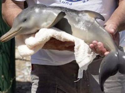 Ένα νεογέννητο δελφίνι ξεβράστηκε στην παραλία Κάτω Άσσου στην Κόρινθο το απόγευμα της Δευτέρας.
