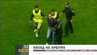 Ένας "τρελαμένος" οπαδός στο ματς της Μέταλιστ Χάρκιβ με την Τσερνομόρετς, την ώρα που είχε διακοπεί το ματς, έκανε ντου στο γήπεδο, πιάνοντας τον βοηθό διαιτητή από το λαιμό!!