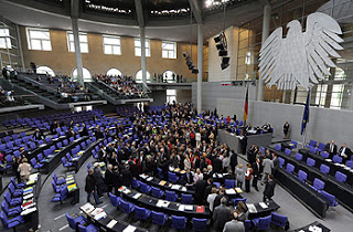 Η συζήτηση που προηγήθηκε έγινε σε υψηλούς τόνους: «Ελληνική χρεοκοπία θα προκαλούσε τη διάσπαση της Ευρωζώνης» είπε ο Σόιμπλε· «Το κούρεμα θα έρθει, αλλά αποφεύγετε την αλήθεια όπως ο διάβολος το λιβάνι» απαντά στη γερμανική κυβέρνηση το SPD. Στο Συνταγματικό Δικαστήριο προτίθεται να προσφύγει το κόμμα της Αριστεράς (Linke) κατά του προγράμματος.