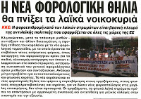 «Τα νέα χαράτσια και οι νέες φορολογικές θηλιές που φέρνει η συγκυβέρνηση στους εργαζόμενους, τους φτωχούς επαγγελματοβιοτέχνες και αγρότες, για να δώσει νέες φοροαπαλλαγές στις μεγάλες επιχειρήσεις, δεν είναι προσωρινά» σχολίασε το Γραφείο Τύπου της ΚΕ του ΚΚΕ Όπως σημείωνει, «η φοροεπιδρομή κατά των λαϊκών στρωμάτων είναι βασική πλευρά της αντιλαϊκής πολιτικής που εφαρμόζεται σε όλες τις χώρες της ΕΕ».