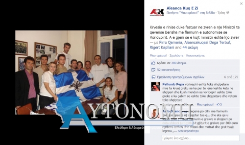 Την Τρίτη 11 Δεκεμβρίου η αλβανική εθνικιστική οργάνωση δημοσίευσε παλαιότερη φωτογραφία της ΝΕΒ όπου εμφανίζονται μέλη του τότε διοικητικού συμβουλίου του συλλόγου να κρατάνε στα χέρια τους την σημαία της Αυτόνομης Βορείου Ηπείρου.