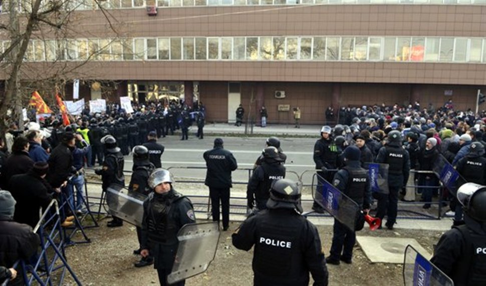 Περίπου 7.000 υποστηρικτές της αντιπολίτευσης διαδήλωσαν το μεσημέρι στα Σκόπια, μπροστά από τα κεντρικά γραφεία του κυβερνώντος κόμματος VMRO-DPMNE του Νίκολα Γκρούεφσκι, μετά τα επεισόδια της Δευτέρας 24 Δεκεμβρίου εντός και εκτός της Βουλής και την αποχώρηση της αντιπολίτευσης από το Κοινοβούλιο.Ο αρχηγός του μεγαλύτερου κόμματος της αντιπολίτευσης «Σοσιαλδημοκρατική Ένωση» (SDSM), Μπράνκο Τσερβένκοφσκι, μιλώντας στους συγκεντρωμένους, ανέφερε ότι οι αντικυβερνητικές διαδηλώσεις θα συνεχιστούν αμέσως μετά την Πρωτοχρονιά, με αποκλεισμούς δρόμων σε όλη τη χώρα.