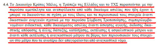 Αφού, εκτός από την ασυλία του Ελληνικού Δημοσίου, στις αντίστοιχες δανειακές συμβάσεις, καταργήθηκε η ασυλία και δεσμεύθηκαν με δικαίωμα εκτέλεσης όλα τα περιουσιακά στοιχεία του ΤΧΣ και της ΤτΕ, η οποία συμβάλλεται πλέον όχι ως αντιπρόσωπος, όπως στο ΜΝΗΜΟΝΙΟ Ι, αλλά ως εγγυητής του Ελληνικού Δημοσίου.