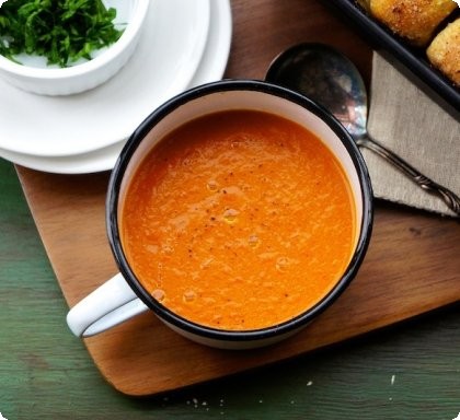5. Αφήστε τη σούπα να κρυώσει ελαφρά και τα λαχανικά να δέσουν ώστε να δημιουργηθεί ένα βελούδινο μείγμα. Βάλτε ξανά τη σούπα στο μάτι και ζεστάνετέ την σε χαμηλή θερμοκρασία, αλατοπιπερώνοντας αν χρειάζεται. Σερβίρετέ την ζεστή.