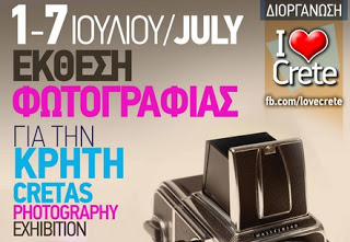 Ο Δήμος Χανίων σε συνεργασία με τη μεγαλύτερη διαδικτυακή κοινότητα της Κρήτης "I ♥ Crete" παρουσιάζουν τις 30 διακριθείσες φωτογραφίες του Διαγωνισμού Φωτογραφίας με θέμα “Η Κρήτη μας” στην Πύλη της Άμμου (Αίθουσα Sabbionara), στα Χανιά, από 1 έως 7 Ιουλίου 2013.