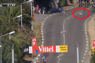 Ο παιχνιδιάρης σκύλος ήθελε να παίξει στο δρόμο, λίγα δευτερόλεπτα πριν περάσουν οι ποδηλάτες του Γύρου της Γαλλίας.