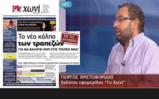 Τη μεγάλη αυτή αποκάλυψη που έκανε Το ΧΩΝΙ της περασμένης Κυριακής, παρουσίασε ο εκδότης της εφημερίδας, Γιώργος Χριστοφορίδης, καλεσμένος στο απεργιακό πρόγραμμα της ΕΡΤ.
