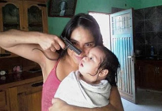 Το γιατί έχει προκαλέσει πανικό, δεν χρειάζεται εξήγηση. Σε αυτή απεικονίζεται μια νεαρή, να ποζάρει χαμογελώντας στον φακό, την ώρα που με ένα όπλο σημαδεύει ένα παιδί, σχεδόν δύο ετών.