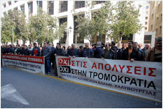 Συγκέντρωση έξω από το υπουργείο Εργασίας, στην οδό Σταδίου, πραγματοποιούν περίπου 100 διαδηλωτές - απεργοί της Ελληνικής Χαλυβουργίας.