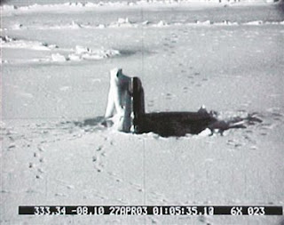 Μέσα στην απέραντη έκταση του πάγου η πολική αρκούδα είδε κάτι μαύρο να ξεχωρίζει και έσπευσε προς εξερεύνηση. Το ‘πιασε από ‘δώ, το ‘πιασε από ‘κεί, δεν μπόρεσε να καταλάβει τι είναι. Επρόκειτο για την ουρά του πυρηνικού υποβρυχίου των ΗΠΑ «USS Connecticut», το οποίο αναδυόταν εκείνη την ώρα από τους πάγους στον Αρκτικό Ωκεανό. Η φωτογραφία τραβήχτηκε από το περισκόπιο του υποβρυχίου τύπου «Sea Wolf», το οποίο βρίσκεται στον Αρκτικό για να συμμετάσχει σε ναυτικές ασκήσεις.