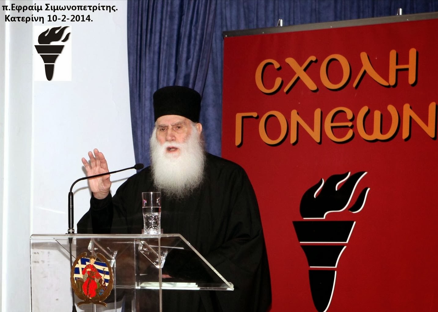 Τη Δευτέρα 10/2/2014 οι φίλοι της Σχολής Γονέων-Ανοικτού Πανεπιστήμιου Κατερίνης απόλαυσαν ένα πνευματικό αγιορείτικο συμπόσιο με τον Ιερομόναχο π. Εφραίμ, Σιμωνοπετρίτη που μίλησε για «τον χαρισματούχο γέροντα παπά Εφραίμ τον Κατουνακιώτη».