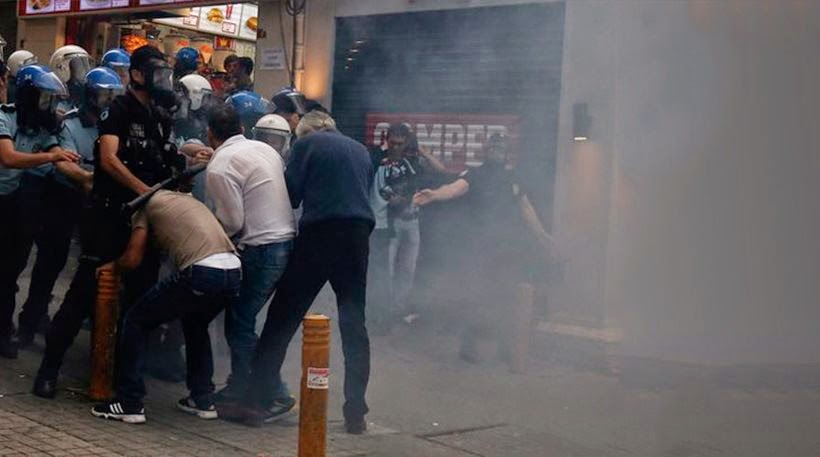 Αρκετές εκατοντάδες άνθρωποι είχαν συγκεντρωθεί στους δρόμους που οδηγούν στην Πλατεία Ταξίμ, φωνάζοντας συνθήματα υπέρ της παραίτησης της κυβέρνησης Ερντογάν Η τουρκική αστυνομία έκανε χρήση δακρυγόνων και αντλιών νερού υπό πίεση στο κέντρο της Κωνσταντινούπολης και στην Άγκυρα προκειμένου να διαλύσει το πλήθος των διαδηλωτών που συγκεντρώθηκαν για να τιμήσουν την πρώτη επέτειο από τις αντικυβερνητικές διαδηλώσεις του Ιουνίου του 2013 που είχαν συγκλονίσει την Τουρκία.