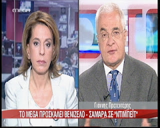 Η κατάσταση είναι για γέλια και για κλάμματα στο δελτίο ειδήσεων του MEGA αφού πλέον δεν κράτανε ούτε τα προσχήματα ως προς την στηριξή τους στον δικομματισμό της διαφθοράς. Η "αγία" τετράδα του MEGA (τρέμη, πρετεντέρης, καψής, τσίμας) με πρωτοστάστη τον διευθυντή ειδήσεων Χ. Παναγιωτόπουλο μας είπαν ευθαρσώς οτι debate πρέπει να γίνει μόνο με τα κόμματα της ΝΔ και του ΠΑΣΟΚ αφού όλα τα άλλα κόμματα περιττεύουν και δεν έχουν καμμία τύχη εξουσίας και καλέσανε Βενιζέλο και Σαμαρά να αποδεχτούν την προτασή τους.