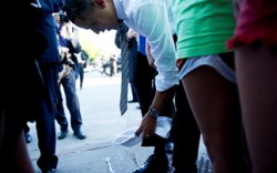 Όταν ο Ομπάμα έφτασε προς το μέρος της ένας φωτογράφος κλώτσησε τη συσκευασία λερώνοντας το παντελόνι του πλανητάρχη!