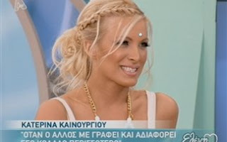 Καλεσμένη στην εκπομπή της Ελένης Μενεγάκη την Παρασκευή ήταν η Κατερίνα Καινούργιου. Η συνέρευση των δυο ξανθιών κυριών έγινε μέσα σε ένα πολύ άνετο και αστείο κλίμα, τόσο μάλιστα που η φιλοξενούμενη ένιωσε τόσο άνετα που η Ελένη πήγε να τη σταματήσει, λέγοντας «αυτά θα έπρεπε να τα λες με τις φίλες σου, όχι δημόσια».