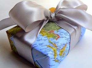Σελίδες που έχουν πέσει από τον γεωγραφικό άτλαντα είναι μια άλλη ιδέα. Οι χάρτες αποτελούν το κατάλληλο μέγεθος για το τύλιγμα μεγάλων δώρων, όπως είναι τα επιτραπέζια παιχνίδια. Και πάλι, μπορείτε να αποδώσετε στοχαστικότητα με την προσαρμογή της κατάλληλης αφίσας για να ταιριάζει με τα ενδιαφέροντα του παραλήπτη.