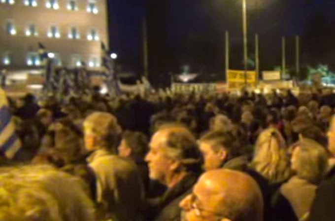 Γενικά πλάνα από την τρίτη συνεχόμενη μεγάλη συγκέντρωση υποστήριξης της... κυβέρνησης ενόψει των διαπραγματεύσεων στο Eurogroup (Σύνταγμα, 15.2.2015).