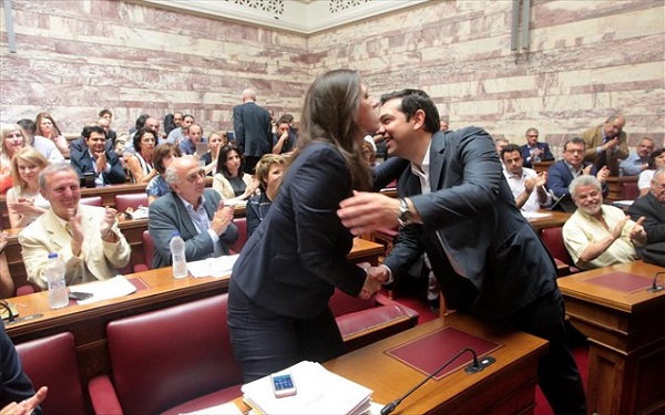 Με θερμό χειροκρότημα έγινε δεκτός ο πρωθυπουργός Αλέξης Τσίπρας κατά την είσοδό του στην αίθουσα της Γερουσίας στη Βουλή όπου συνεδριάζει η κοινοβουλευτική ομάδα του ΣΥΡΙΖΑ, λίγες ώρες πριν από την κρίσιμη ψηφοφορία για το νομοσχέδιο με τα προαπαιτούμενα. Εκ των χαρακτηριστικών στιγμιότυπων κατά την είσοδο του, ήταν ο ασπασμός που είχε με την πρόεδρο της Βουλής Ζωή Κωνσταντοπούλου. Πάντως, για την κρίσιμη ψηφοφορία στην ελληνική Βουλή, καθώς και οι ενδεχόμενες διαρροές με τις οποίες θα βρεθεί αντιμέτωπος ο πρωθυπουργός Αλέξης Τσίπρας μονοπωλούν το ενδιαφέρον του γερμανικού Τύπου.