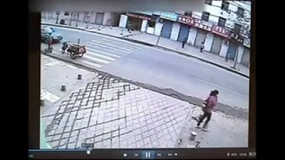 Στο βίντεο που ακολουθεί μία γυναίκα περπατάει αμέριμνη όταν ξαφνικά υποχωρεί η γη κάτω από τα πόδια της