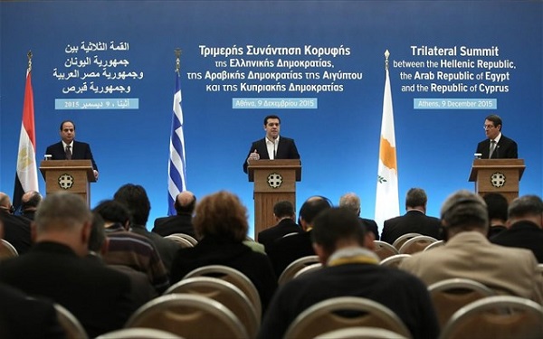 Η τριμερής συνεργασία Ελλάδας, Κύπρου και Αιγύπτου αποτελεί πυλώνα ειρήνης και σταθερότητας, τόνισε ο πρωθυπουργός Αλέξης Τσίπρας, μετά τη τριμερή συνάντηση με τον Κύπριο πρόεδρο Νίκο Αναστασιάδη και τον Αιγύπτιο πρόεδρο αλ Σίσι. Ο κ. Τσίπρας σημείωσε ότι στο πλαίσιο της τριμερούς αλλά και των διμερών συναντήσεων επιβεβαιώθηκε εκ νέου η σταθερή ανάπτυξη της πολύπλευρης και ευρύτατης συνεργασίας των τριών χωρών, μεταξύ λαών με μακροχρόνιους δεσμούς.