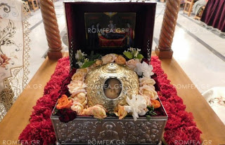 Να αναφερθεί ακόμα ότι το ιερό λείψανο θα παραμείνει στο Ναό μέχρι την Κυριακή 12 Ιουνίου, για να αναχωρήσει αργά το απόγευμα για την Ιερά Μονή Οσίου Δαυίδ, στην Εύβοια. Tromaktiko