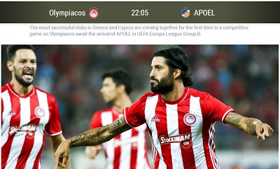 «Οι πιο πετυχημένες ομάδας στην Ελλάδα και στην Κύπρο θα έρθουν για πρώτη φορά αντιμέτωπες σε ευρωπαϊκή διοργάνωση, καθώς ο Ολυμπιακός θα υποδεχθεί τον ΑΠΟΕΛ για τον β’ όμιλο του Europa League», αναφέρεται στον υπότιτλο του δημοσιεύματος και αφορά το παιχνίδι της άλλης Πέμπτης στο Καραϊσκάκη.
